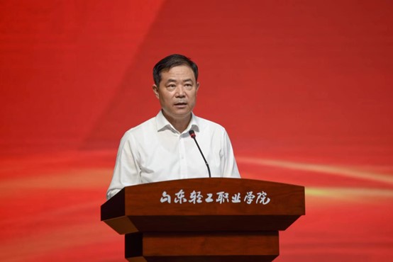 本站讯(通讯员 于燕玲)9月15日下午,山东轻工职业学院隆重举行2023级新生开学典礼暨开学第一课。学校党委书记范桂君出席并讲授了开学第一课,党委副书记、校长袁雷主持会议。