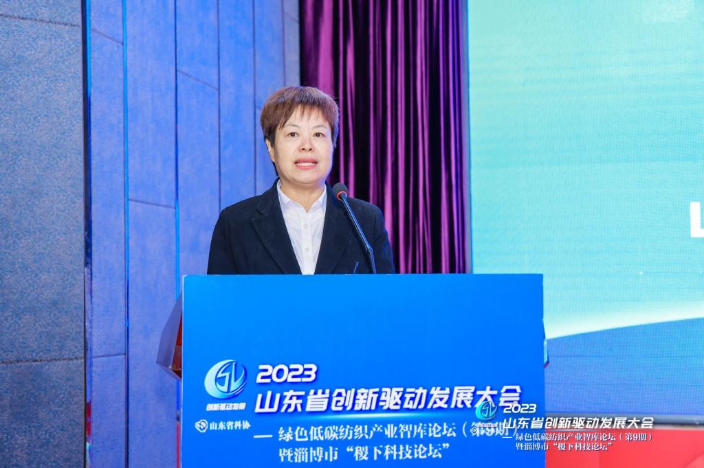 本站讯(通讯员 武燕)9月25日,山东省创新驱动发展大会第9期智库论坛——绿色低碳纺织产业智库论坛暨淄博市“稷下科技论坛”在周村宾馆举办,论坛由山东省科协、大众报业集团、中国纺织工程学会主办,山东纺织工程学会、淄博市科协、周村区人民政府、山东轻工职业学院承办,淄博市周村区纺织丝绸行业商会、传化智联股份有限公司、山东理工大学鲁泰纺织服装学院协办。山东轻工职业学院党委委员、副校长李玉红,科研处处长王莹莹、纺织工程系主任陈爱香及师生代表参加了论坛,李玉红作了致辞,纺织工程系教授王开苗做了专家讲座。