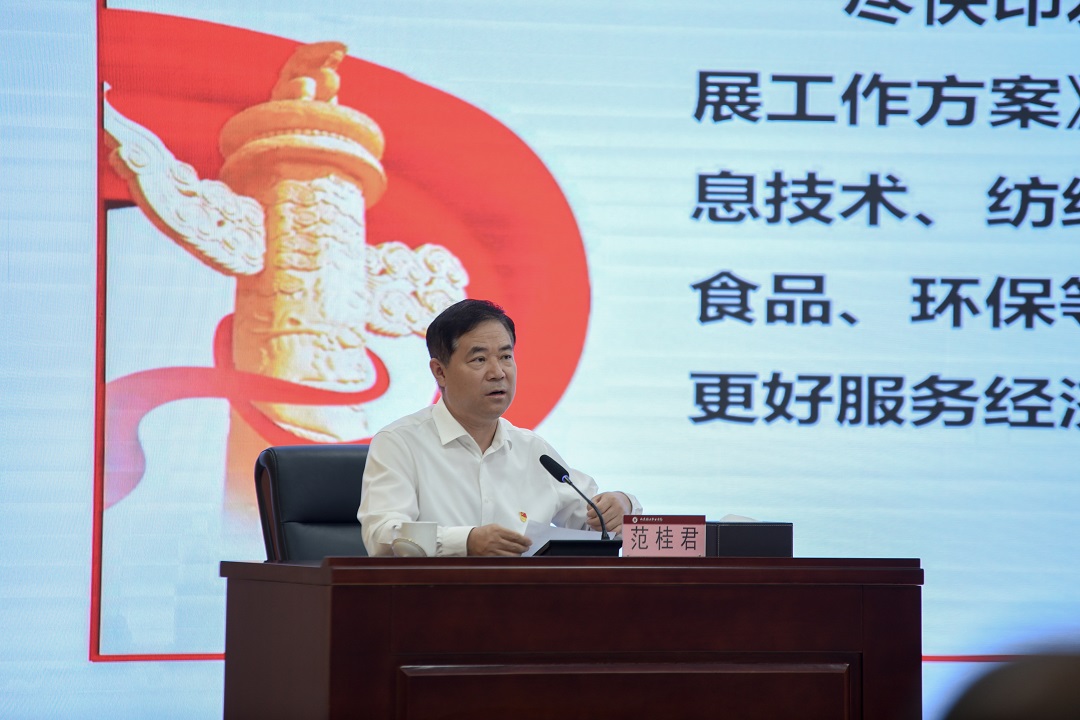 范桂君说,以学促干就是要坚持强实干、抓落实,努力开创新时代轻院建设新局面。要坚持学干融合、学以致用、知行合一,把开展主题教育与推动中心工作结合起来,把思想和行动统一到加快建设一流特色高水平高职院校发展目标上来,统一到加快实现“七个新跃升”、建设“七个现代化新轻院”重点任务上来,锚定党代会和“十四五”规划确定的各项目标任务,以提效率争先锋、提效能争先例、提效益争先进的实干和担当,奋力担起“走在前、开新局”的崇高使命。