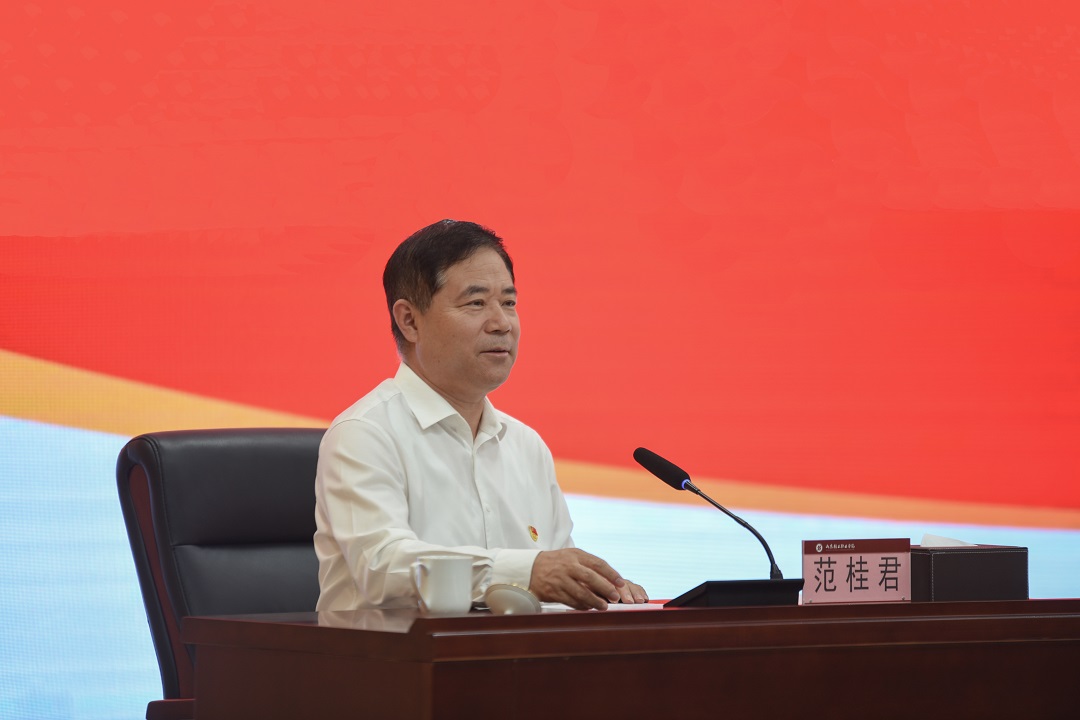 范桂君以《学思践悟担使命 凝心聚力建新功 奋力谱写学校高质量发展新篇章》为题,联系学校实际,就如何将“以学铸魂、以学增智、以学正风、以学促干”落到实处进行了深入讲解。