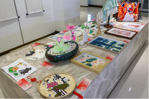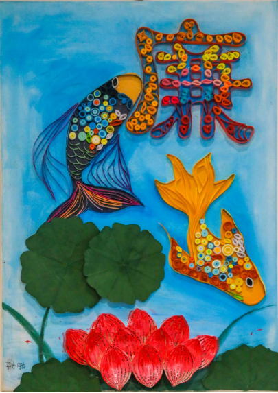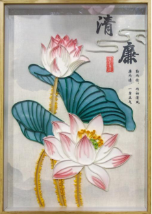 “莲”与“廉”同音,而莲的“出淤泥而不染,濯清涟而不妖,中通外直,不蔓不枝,香远益清,亭亭净植”的高贵品格,又使其与“廉”同义。廉洁文化展厅里,既有国画的莲花,又有剪纸的莲花,还有水彩画的莲花和莲花摆件,师生结合自身专业,在制作这些作品的同时,学习了廉洁的精神内核,增进了自身品行,达到了修身律己的效果。