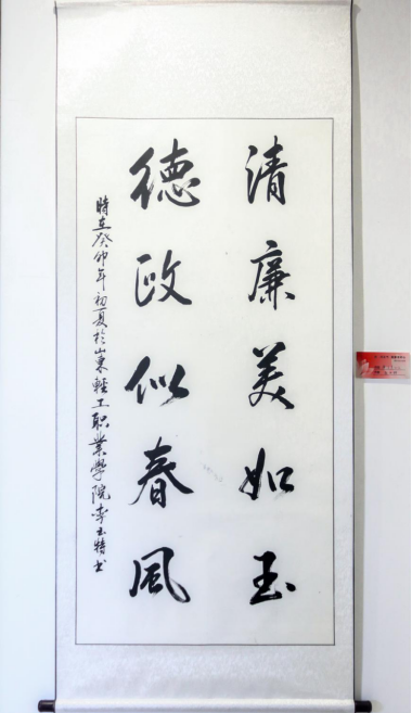 本站讯(通讯员 汪维忠 申万意 于珍珍)“公以生其明,俭以养其廉”“清廉美如玉,德政似春风”……走进山东轻工职业学院廉洁文化展厅,一面面被廉洁文化作品占满的墙面,让人不由得眼前一亮。
