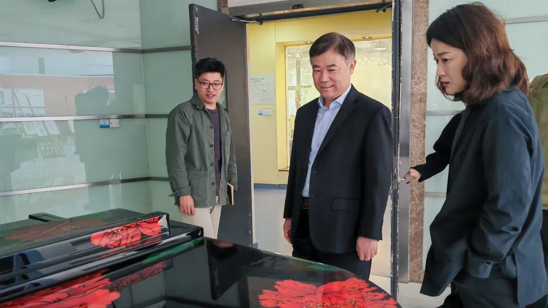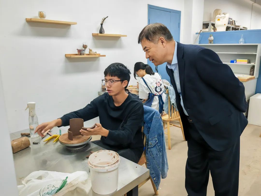 范桂君一行还参观了学校手工艺术学院实践教学基地、大师工作室、技艺传承工作室等。深切感受了通过非遗技艺师带徒的口传身授,以及通过工艺文化和价值观传递,激发学生把现代生活方式和知识结构相结合,开展创意创新。