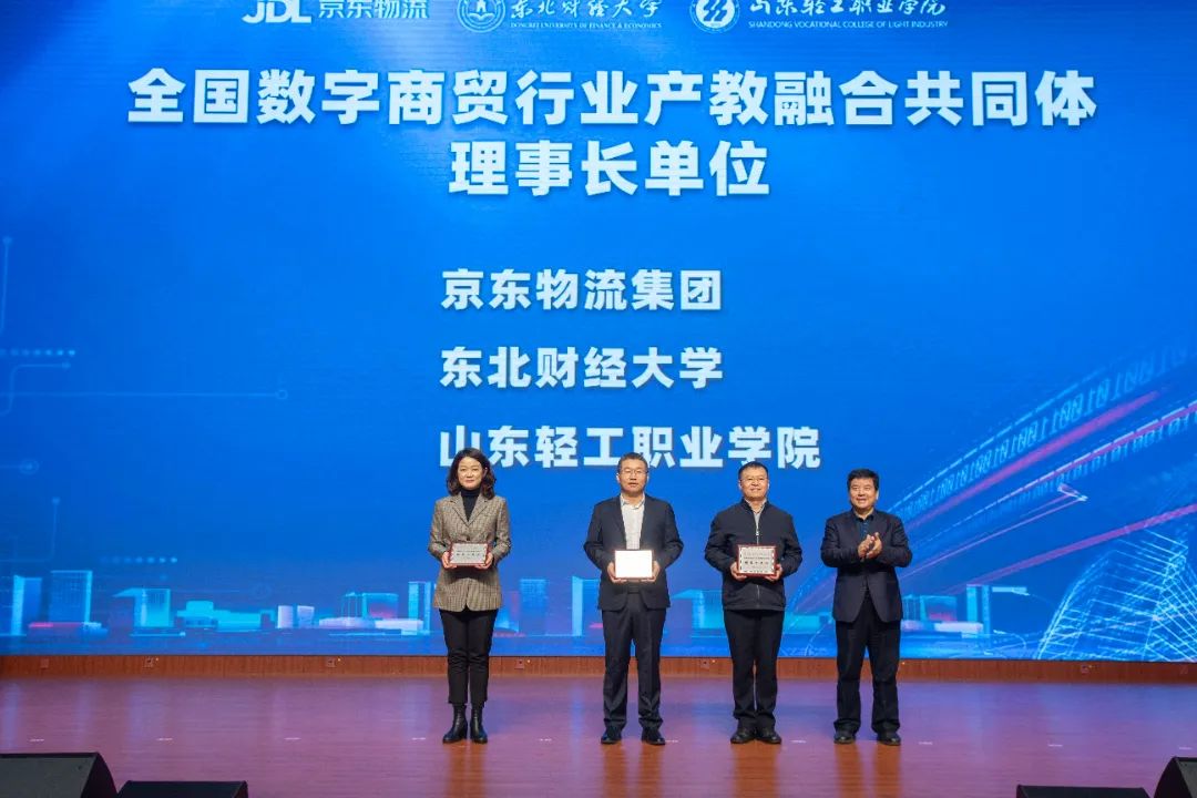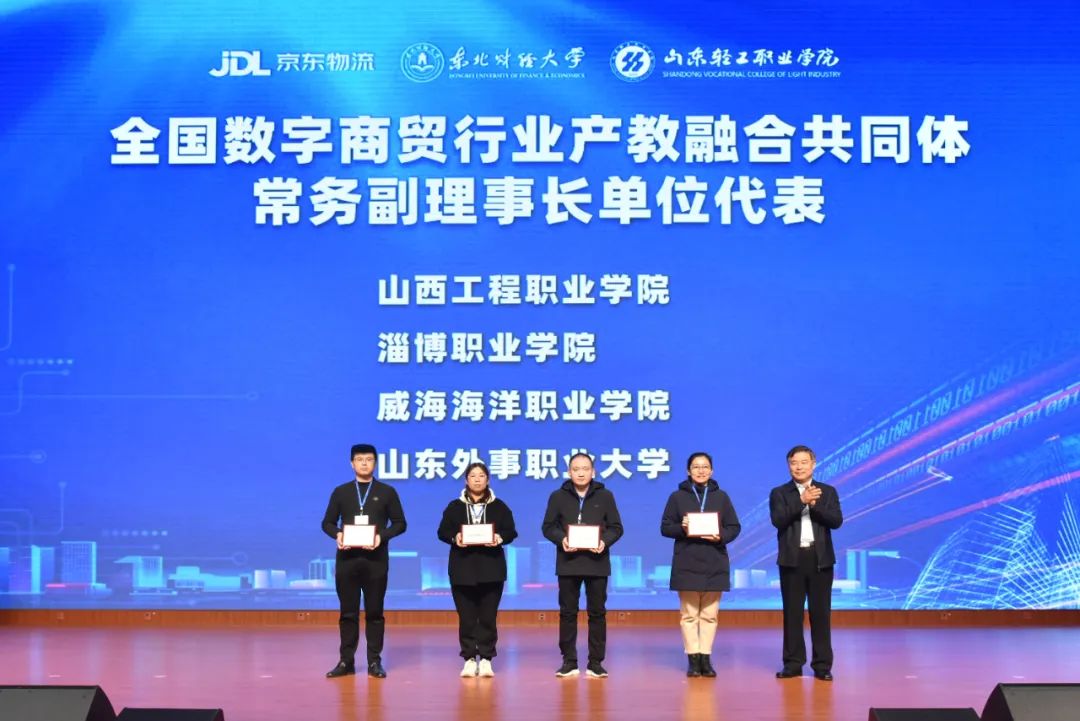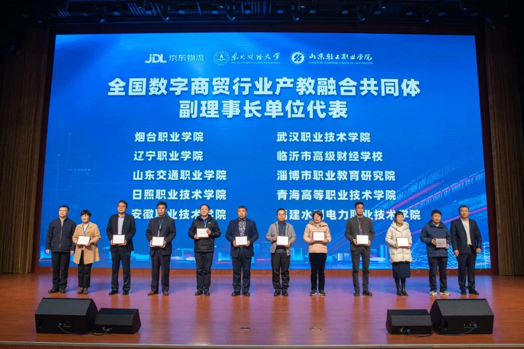 本站讯 11月26日上午,全国数字商贸行业产教融合共同体成立大会在山东轻工职业学院举行。中华职业教育社原党组书记、总干事,中华同心温暖工程基金会副理事长兼秘书长方乃纯,京东集团副总裁肖肃,淄博市政协副主席、民建市委会主委、市中华职教社主任马靖,淄博市委教育工委常务副书记、市教育局党组书记、局长孙英涛,山东轻工职业学院党委书记范桂君,东北财经大学工商管理学院副院长李浩,中国成人教育协会乡村振兴专业委员会秘书长姜明房,中国条码技术与应用协会高校工作委员会副会长徐德洪等领导嘉宾出席仪式,并共同启动产教融合共同体。