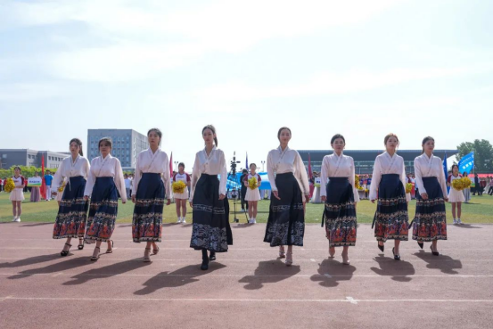 田径场上队列整齐、彩旗飘扬,各系院方阵逐一亮相,各展风采。伴随着梦幻炫酷的彩色烟雾,汉服与时装斗艳,川剧的变脸艺术与飞扬的动感舞步争辉……各方队结合自己的专业特点,以别出心裁的创意和精彩纷呈的表演惊艳亮相。随后,恢宏壮观的团体操表演和激荡人心的《青春之光》合唱把开幕式的气氛推向高潮。