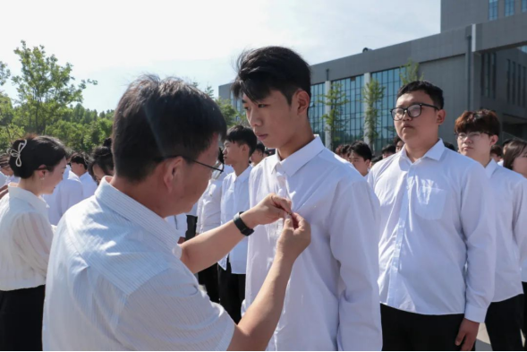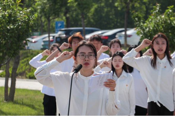 仪式上,学校团委副书记袁奇宣读了山东轻工职业学院2024年上半年新发展团员名单;与会领导老师、各系院团总支书记、老团员代表等为新团员佩戴团徽;新团员面向团旗庄严宣誓,誓言铮铮,彰显着新团员积极向上的精神风貌。