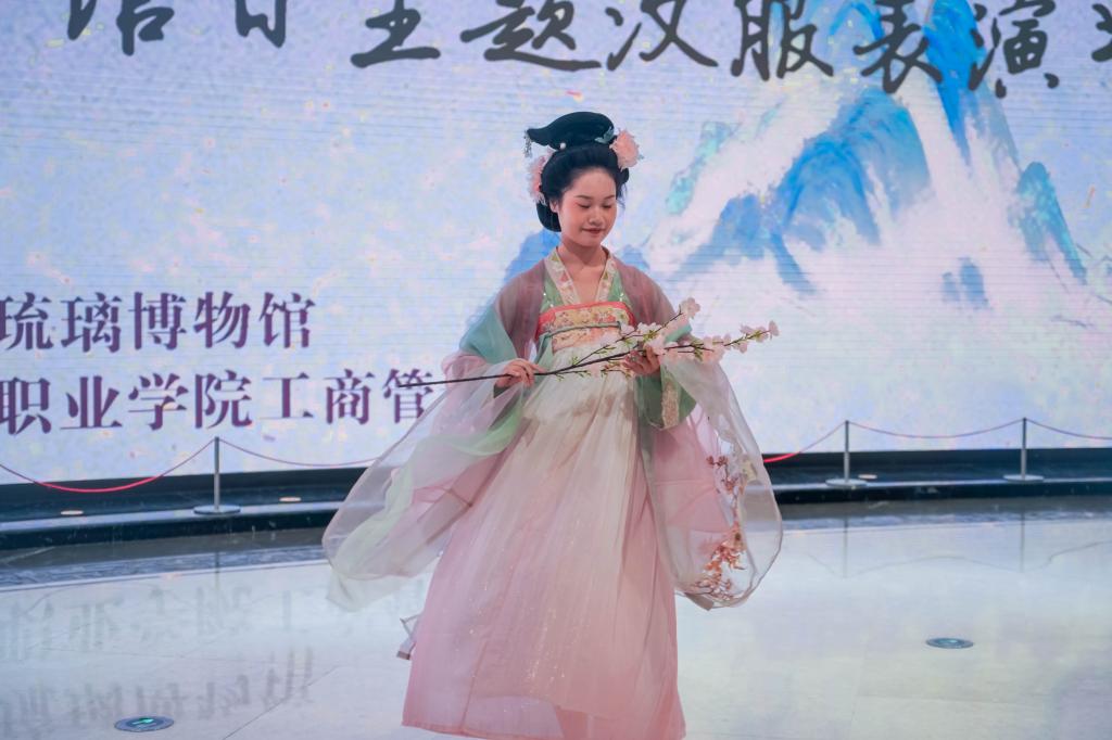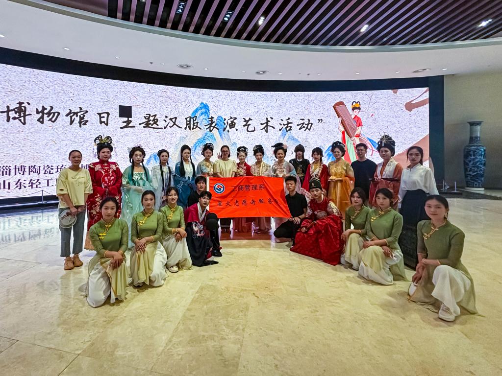 活动现场,学校工商管理系“星火”志愿团队进行了“国风雅韵 礼兴齐鲁”主题汉服表演。