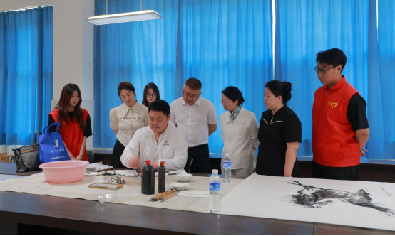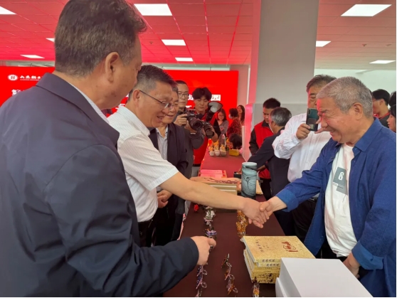 学院党委副书记唐勋代表学校接受淄博市工艺美术大师等文化从业者赠送的作品。
