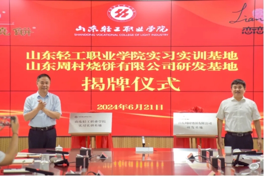 仪式上,山东轻工职业学院党委书记范桂君与周村区委常委、副区长李建华为“山东轻工职业学院实习实训基地”、“山东周村烧饼有限公司研发基地”揭牌。山东轻工职业学院党委副书记、校长袁雷与山东周村烧饼有限公司、山东恋恋食品有限公司总经理李莲签署了合作协议。山东轻工职业学院党委委员、副校长焦翠平介绍了双方合作内容。