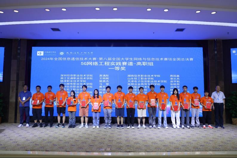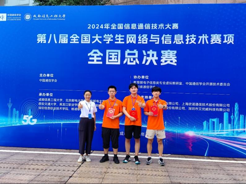 本站讯(通讯员 赵芳)7月21日,2024年全国信息通信技术大赛——第八届全国大学生网络与信息技术赛项全国总决赛在成都信息工程大学圆满收官。经过激烈角逐,我校嘉环ICT产业学院学生组成的四支队伍在总决赛中获得高职组一等奖2项、二等奖1项、三等奖1项。