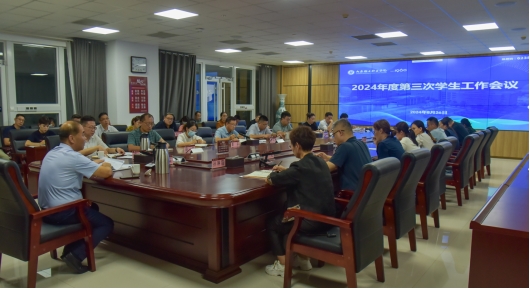 本站讯(通讯员 李杰)8月26日,学校召开2024年度第三次学生工作会议。学校党委副书记、校长袁雷出席会议并讲话,党委副书记唐勋主持会议,相关处室负责人,各系院党总支书记、学管主任、团总支书记及相关人员参加会议。
