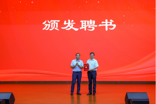 宣讲前,学校党委副书记、校长袁雷同夏宗长参观了学校国际时尚创意中心丝绸纺织服装全链数字化展厅和学校“三转一响”博物馆,并为夏宗长颁发客座教授聘书。