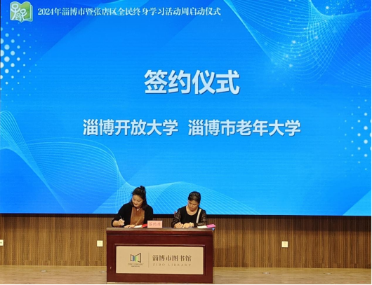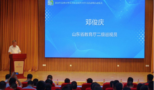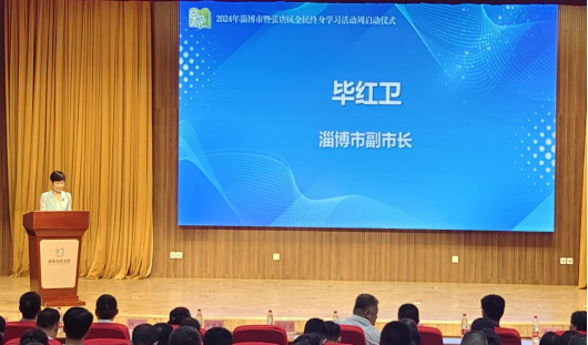 本站讯(通讯员 张昱)9月20日上午,由淄博市教育局等六部门主办,山东轻工职业学院、张店区教体局、淄博市图书馆联合承办的2024年淄博市暨张店区全民终身学习活动周启动仪式在市图书馆顺利举行。启动仪式由淄博市政府办公室副主任张栋主持,山东省教育厅二级巡视员邓俊庆、淄博市副市长毕红卫出席活动并讲话。启动仪式上同步为淄博老年开放大学进行揭牌。