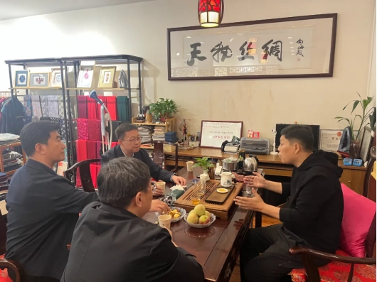 唐勋一行先后到校友企业泛微网络科技股份有限公司山东运营中心、济南天物丝绸有限公司、山东龙心健康产业发展有限公司等考察交流。在泛微网络科技股份有限公司山东运营中心,唐勋一行参观了运营部、销售部,详细了解公司生产经营、规模效益、数字化产品技术优势等情况;在济南天物丝绸有限公司,唐勋一行详细了解公司文创产品品类,双方就人才培养、校企合作等进行了交流探讨;在山东龙心健康产业发展有限公司,唐勋详细了解公司主营业务以及今后公司的发展规划,体验了公司主要产品,并就行业发展新态势、校企合作新趋势等事宜进行了探讨。