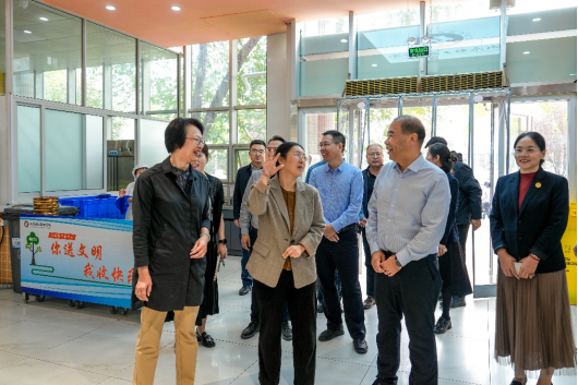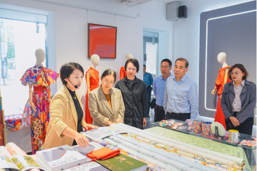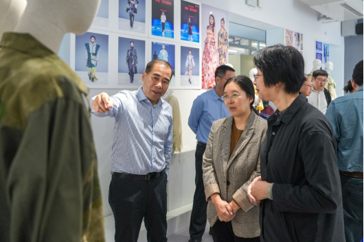 马晓卉一行参观了时尚创意中心丝绸纺织服装全链路数字化展厅,对学生设计开发的花型图案表示赞许,现场观看了数码印花工作室学生团队完成图案到成品面料转化过程,并实地参观了餐厅、学术报告厅、智慧校园服务中心等,深入了解校园环境和基础设施,对校园文化建设、硬件设施等表示高度赞赏。