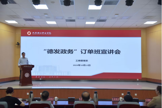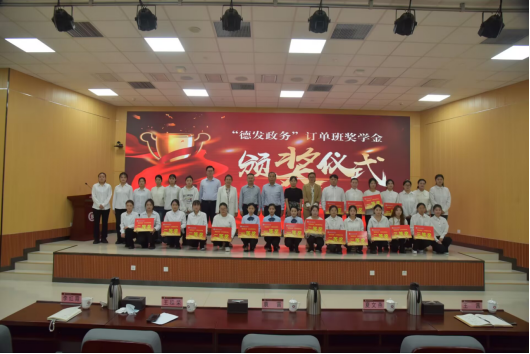 “德发政务”订单班设立于2023年10月,由山东轻工职业学院工商管理系与山东省德发政务服务外包有限公司联合成立。经过一年多的教学运行,校企双方从专业成绩、职业技能、素养表现等方面对订单班学生进行综合评价,28名优秀学子获得了“德发政务”订单班奖学金。公司总裁王桂荣代表企业对同学们表示祝贺,并希望同学们在今后的学习和工作中继续努力,早日成为一名合格的政务服务工作人员。随后,企业面向2024级新生开展了订单班宣讲。