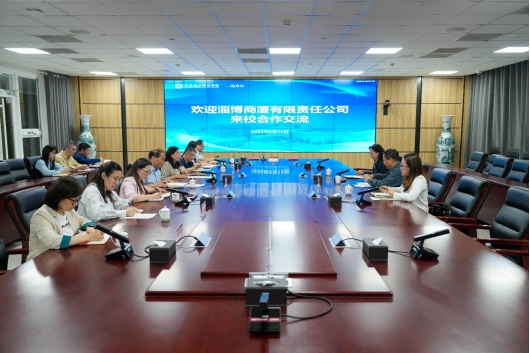 袁雷对淄博商厦有限责任公司一行来校交流表示热烈欢迎,介绍了学校基本情况并一同观看学校宣传片。王亮方介绍了淄博商厦有限责任公司企业概况与发展规划。