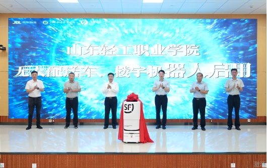本站讯(通讯员 刁晓岑)5月29日上午,“淄博电商赋能计划”暨无人车启用发布会在山东轻工职业学院成功举办。学校党委书记范桂君,淄博市邮政管理局党组书记、局长王栋,学校党委副书记、校长袁雷,京东物流集团教育大区总经理赵利清,淄博市商务局党组成员王建波,山东顺丰速运有限公司淄博分公司负责人鞠家欢,以及来自轻工行业的企业家、驻淄中高职院校的师生代表300余人参加活动。