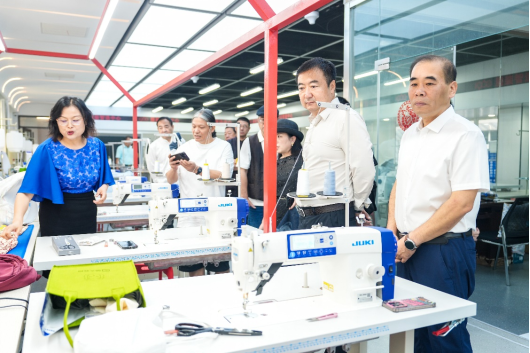 时尚论坛开始前,与会领导嘉宾参观了服装智造中心,深入了解学校智能研发与设计、柔性化智能生产、全流程数字化管理、个性化定制服务等场景。