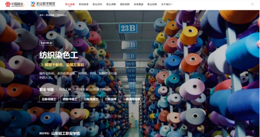 本次上线的纺织染色工职业数字画像,融合文字、视频、图表等多元呈现形式,全方位展现该职业定义、知识结构、技能要求、工作场景、薪酬水平及发展前景,打造出学生、求职者与从业者规划职业发展的数字导航。