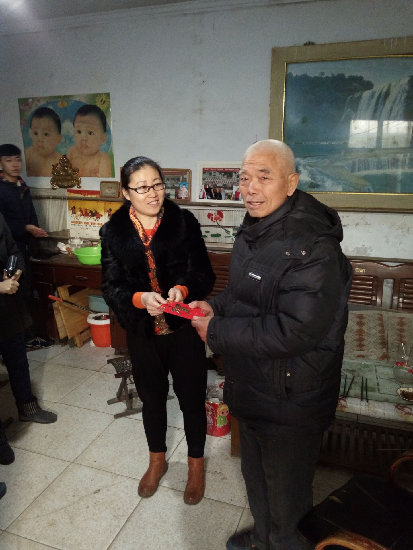 1月10日,我系系主任马雪梅、学管副主任成澎和班主任贾长兰对15现代纺织朱成龙同学进行了家访。