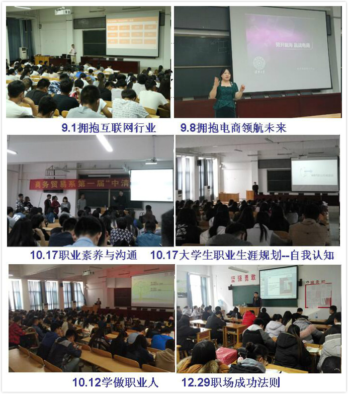 为做好大学生职业指导工作,2016-2017-1学期商务贸易系先后邀请多名企业专家来校做了6场职业指导系列讲座。