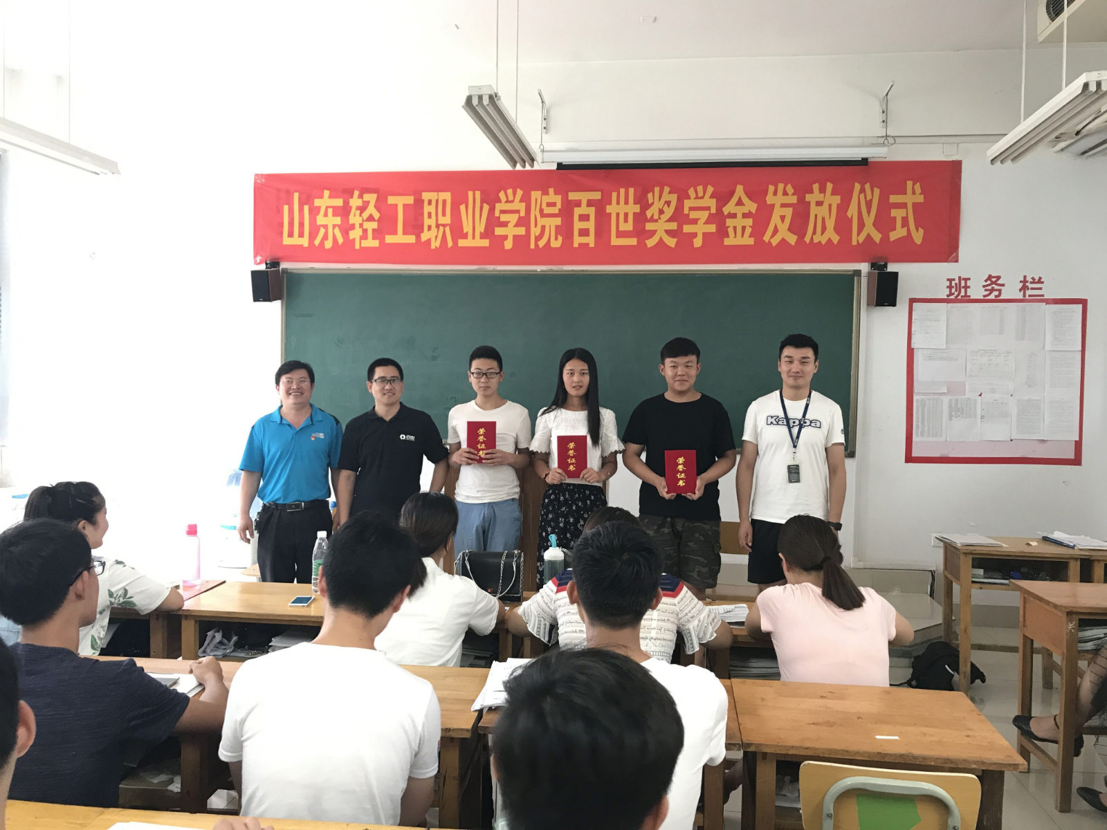 6月30日,商务贸易系在J7204举行15物流百世班“百世奖学金”颁奖仪式。百世物流山东区人力资源部孙经理、运营部于经理来校参加颁奖仪式。