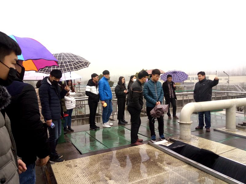 2016年12月22日早,我院轻化工程系15级应用化工专业一班、二班及15化工五专的同学们在肖俊梅和张仁忠老师的带领下到周村区淦清污水处理厂参观,这是专业课《水处理》的现场教学,由厂里工程师给学生讲解污水的处理流程、各种构筑物的名称和作用,学生亲眼看见从污水到清水的过程。