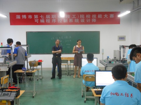 6月25日,淄博市第七届职业院校技能大赛“可编程序控制系统设计师”、“CAD制图”两项目的竞赛在我系淄博市高技能人才培训基地成功举办。“可编程序控制系统设计师”项目竞赛分学生组和教师组,学生组共有来自山东轻工职业学院、淄博职业学院、山东工业职业学院、山东铝业职业学院、山东水利技师学院等我市五所高职院校的十一支队伍参赛,教师组共有来自山东轻工职业学院、山东水利技师学院和山东工业职业学院的8名专业教师参赛;“CAD制图”项目共有33名师生参赛,分别来自山东轻工职业学院、淄博技师学院、山东煤炭技术学院、山东水利技师学院等我市四所高职院校。