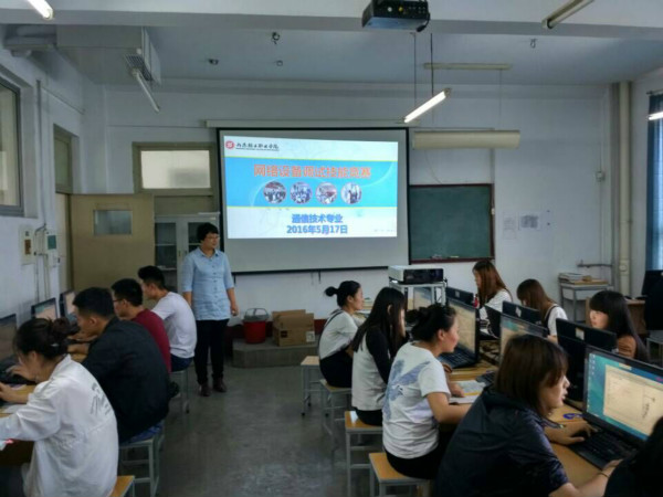 5月17日,信息工程系在第八机房举办了网络设备调试技能竞赛。通信技术专业教师和38名学生参加了此次竞赛。