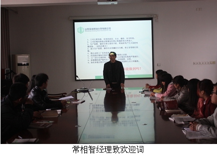 根据2015年4月9日校企课程团队探讨方案安排,2015年4月13日,14金城医药班全体同学在轻化工程系化工教研室主任郭春芳老师和山东金城医药化工股份有限公司人力资源常相智经理的带领下,第一次来到金城医药下属分公司“金城柯瑞“进行了为期一上午的现场教学学习。