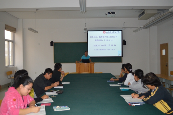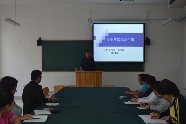 2014年9.19日下午,轻化工程系在J7301召开专业教师暑期企业实践总结报告会,我系全体专业教师参加了此次会议,对实践过程进行交流总结,为以后的企业实践积累效果。 肖鹏业、许兵、申万意三位老师分别就企业实践过程中的,实践企业情况、实践岗位情况、对专业发展的思考、实践收获、对实践活动的建议等情况进行了汇报。 参会教师对实践情况进行了讨论交流,认为教师到企业实践是职业院校教师继续教育的重要形式和途径,也是提高职业院校教师的专业技能和实践教学能力最有效的办法,同时也是部分教师最欠缺的,需要下大力气解决的。同时对实践教师的实习岗位分配、实践计划的制定等方面进行了交流总结。(申万意)