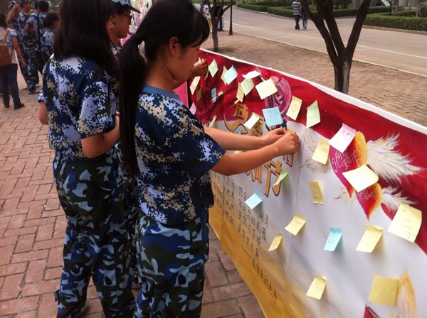 “金秋送爽,感念师恩”。2013年9月10日,我们迎来了第29个教师节。为了表达对老师的感激之情,9月9日——10日在大学生文化广场开展了“祝福语感师恩,便利贴传真情”活动。同学们将自己想对老师说的话写在便利贴上,贴在祝福墙上,让便利贴传达师生之间浓浓的真情。各系也精心制作展板表达对老师的感激之情。