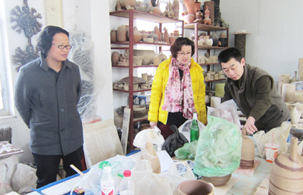 2013年3月14日,天津科技大学艺术设计系师生一行到学院艺术设计系陶艺工作室进行毕业设计作品的学习与创作,艺术设计系李群英主任热情接待来访一行。 李群英主任向天津科技大学的郭主任介绍了我院艺术设计系近几年的发展情况;双方就各自的教学管理和学生管理进行了交流。郭主任对陶艺工作室近几年取得的成果给予肯定和赞扬,表示到我院学习可以使他的学生们掌握更多中国的传统艺术,为学生们提供了广阔的创造和发展空间。郭主任还希望在以后的时间里,两校之间能够加强联系与交流,在特色办学的道路上共同进步。