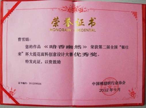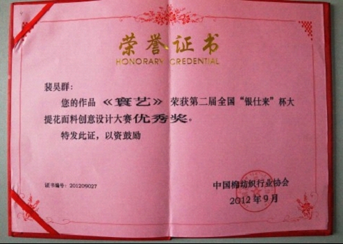 纺织工程系在第二届“银仕来”杯大提花面料设计大赛上获得佳绩
