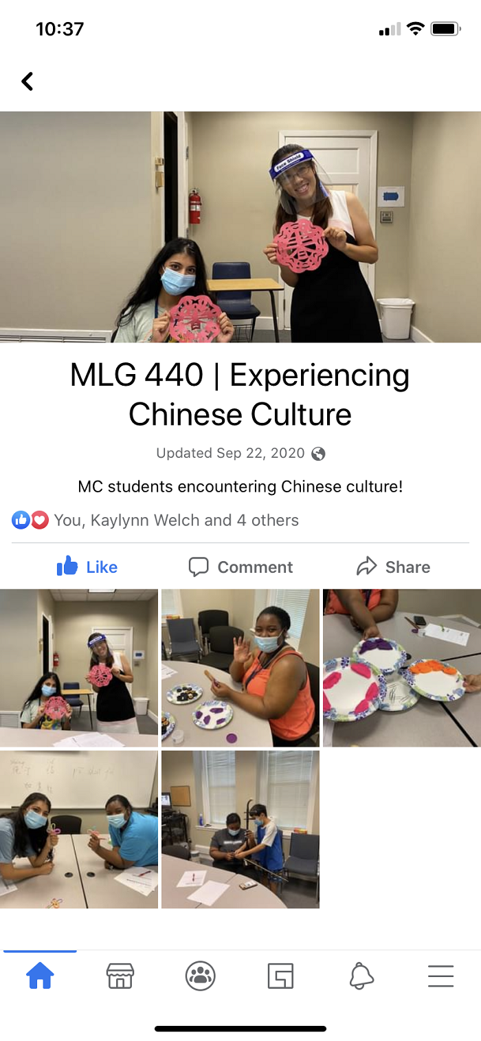 当地时间9月22日,美国密西西比学院现代语言系在社交媒体Facebook官方账号报道了吕宁老师的《体验中国文化》课程,文章题为MC Students Encounter Chinese Culture《密西西比学院学生与中国文化相遇》。