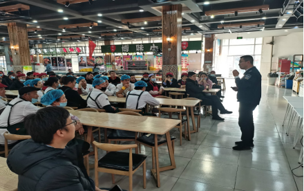 11月27日下午,后勤处邀请山东省居安消防培训中心张教官来我校进行食堂消防安全培训讲座活动,学校各食堂、食材供货超市等80余名员工参加了本次培训讲座活动。