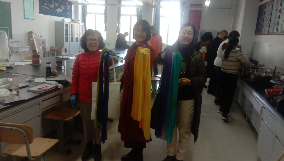 本次活动得到了学院工会的大力支持,大家在灵活运用各种染缬技法的同时,充分发挥自己的想象力,创作了自己丰富的作品,不但传承了传统专业染整技术的特色技艺,也让系部新进的年轻教师们了解了我们的染缬文化,促进了不同专业老师之间的学习交流,丰富了老师们的专业知识和课余生活。