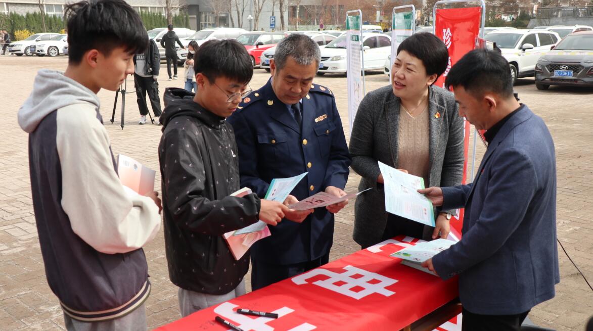 3月17日上午,淄博市周村区烟草专卖局书记、局长张金莲,副局长栾维龙等一行8人走进我校,开展以“拒绝电子烟 你我共携手”为主题的宣传活动,学生工作处、团委、保卫处相关人员参加了此次活动。