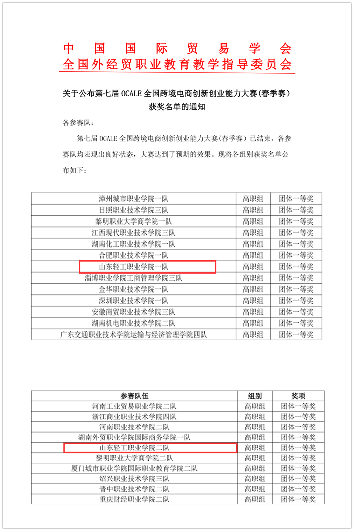 通过这次竞赛,为我校参加2021年山东省职业院校技能大赛“互联网+国际贸易综合技能”赛项奠定了良好的基础,检验了拟参赛学生的综合能力,同时也为本系专业课程教学改革提供了可以借鉴的实践案例,真正实现了以赛促学、以赛促教。(通讯员 韩鑫玮)