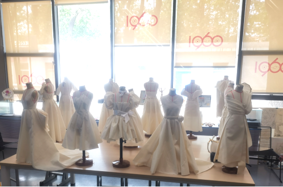 竞赛主要考察学生的立体裁剪、造型和艺术表现能力。通过竞赛检验参赛选手立裁技巧,结合品牌市场定位和流行元素,学生创意设计一款小礼服,使用1:2人台,共14位同学参与了此次决赛,并在6小时内现场完成了小礼服的创意设计及立体造型。