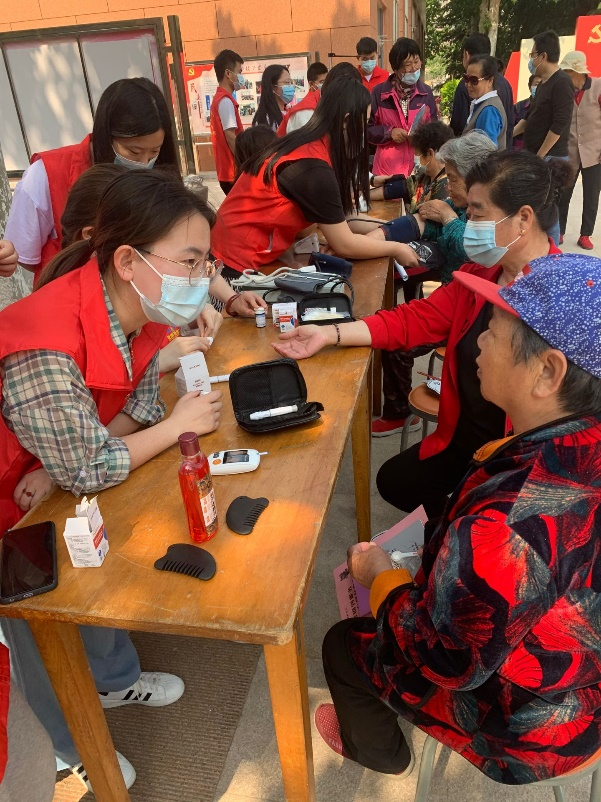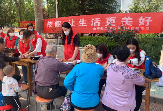 同学们利用自己所学的专业技能,免费为社区居民提供血压、血糖测量,根据大家的不同需求制定健康食谱,同时进行中医养生宣传,深受社区居民的欢迎。“技能服务 美好生活”志愿服务活动的开展,进一步增强了学生的责任感和使命感,引导学生树立起成长成才的自信,同时面向社会有效展示了健康管理系的育人成果和学生的职业素养。志愿服务活动作为学生实用技能培养成效的实际展示舞台,提高了社会上对职业教育人才培养质量的认可,也是把党史学习教育成效转化为育人成效和工作实效的重要抓手,在为群众送健康中真正做到学党史、悟思想、办实事、开新局。