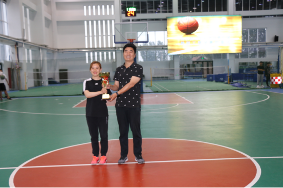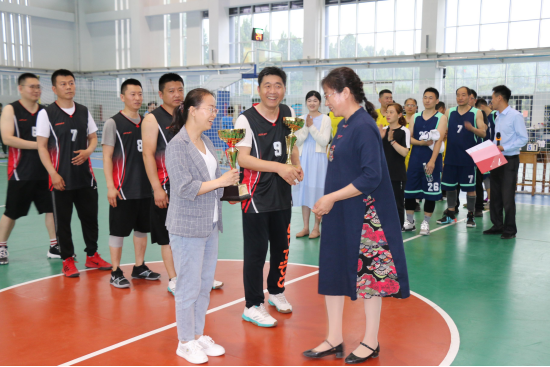 赛后,教职工篮球社团组织了颁奖仪式,学校工会副主席郭常青为获得季军的健康管理系分工会女子篮球队和教务联合分工会男子篮球队颁奖;学校教职工篮球社团负责人荣若安为获得亚军的信息工程系分工会女子篮球队和后勤联合分工会男子篮球队颁奖;学校党委委员、工会主席公昆为获得冠军的教务联合分工会女子篮球队和学团联合分工会男子篮球队颁奖。