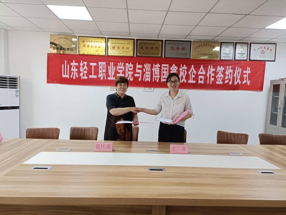 2021年8月18日,山东轻工职业学院与淄博国鑫税务师事务所有限公司举行校企合作签约仪式。出席本次仪式的有工商管理系党总支书记王茜、教学副主任国帅,淄博国鑫税务师事务所有限公司所长郭桂荣,学校部分老师及企业代表。