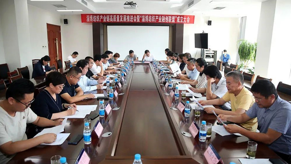 9月3日,淄博纺织产业链高质量发展推进会暨“淄博纺织产业融创联盟”成立大会在鲁泰召开。市工信局党组成员、市传统产业发展中心主任赵鹏,市工信局副县级干部唐海军,鲁泰党委书记、董事长、总裁刘子斌等出席会议,淄博市纺织行业相关企业负责人及我院代表出席会议。