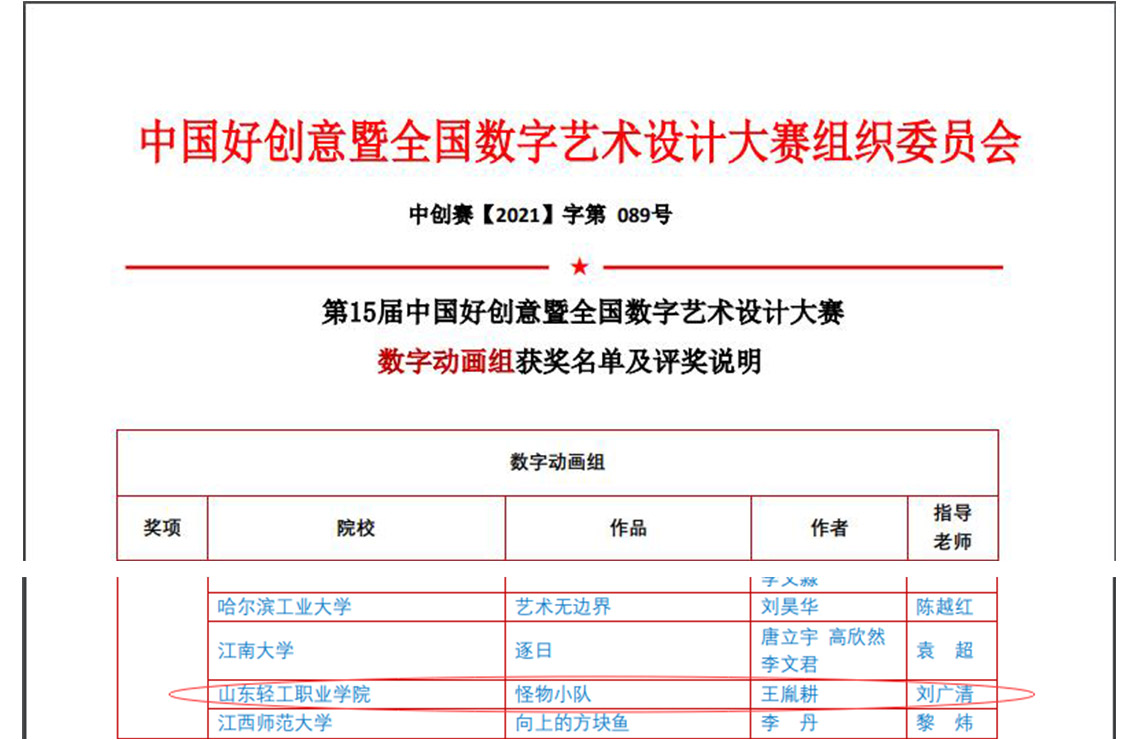 艺术设计系学生在“中国好创意”暨全国数字艺术设计大赛获奖