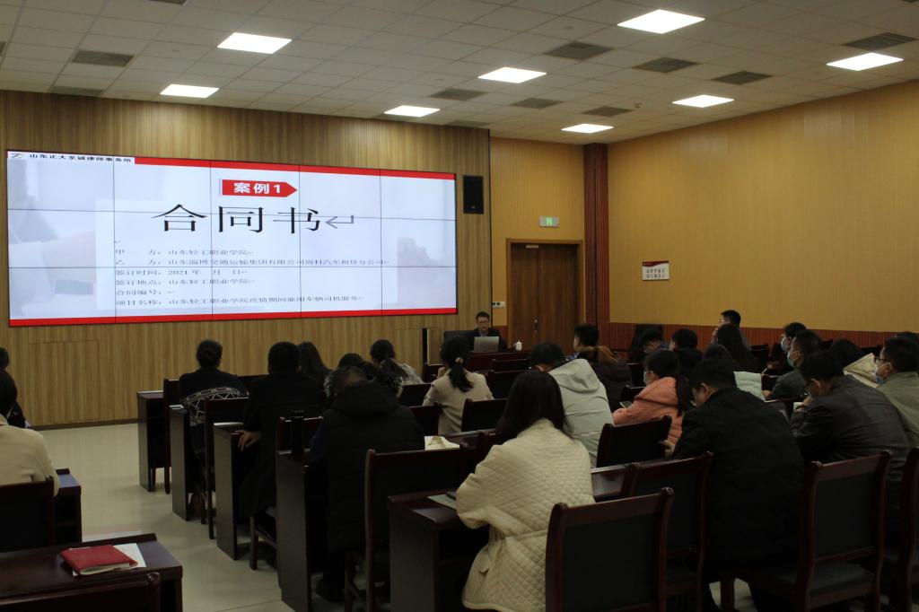 2021年11月26日,为普及法律知识,规范学校合同管理,帮助合同业务承办工作人员了解合同撰写基本内容,防范合同风险,党政办公室邀请学校外聘法律顾问、山东正大至诚律师事务所律师王振宏举办了合同基础知识及实务操作法律讲座。讲座由党政办公室主任许欣然主持,各单位合同业务承办人员等参加。
