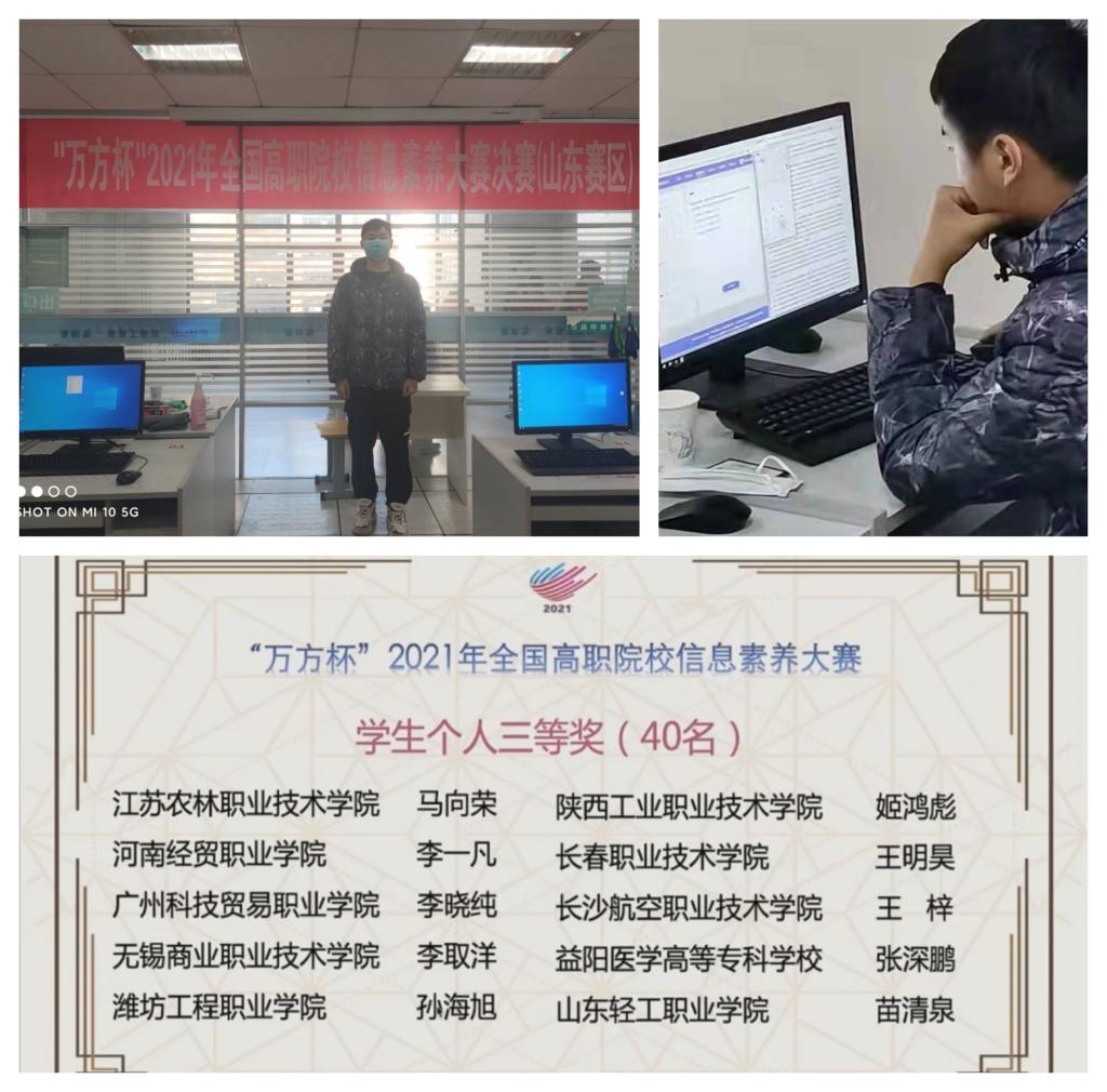 12月12日,“万方杯”2021年全国高职院校信息素养大赛决赛在淄博职业学院隆重举行,图书馆张珊珊老师带队艺术设计系参赛学生苗清泉参加了此次大赛。经过激烈角逐,在来自全国85支高职院校参赛队中,我校苗清泉同学获得三等奖。