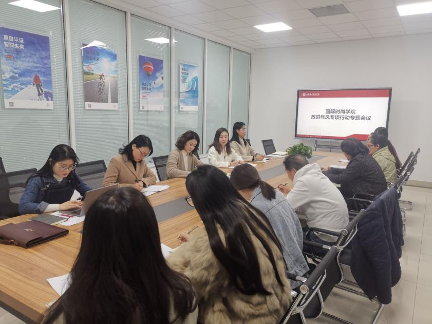 国际时尚学院组织开展2022年学校工作动员大会精神和《关于改进作风专项行动的工作方案》集体学习