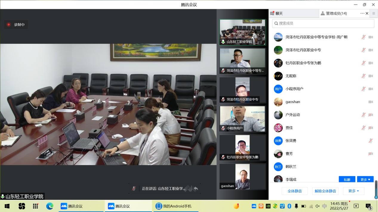 5月27日下午我校与牡丹区职业中专召开线上工作交流会。会议由招生就业办公室主任贾佳主持,教务处、相关系院行政负责人参加会议,牡丹区职业中专相关领导通过腾讯会议与会。